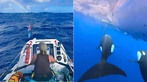 Три кита-убийцы окружили лодку с женщинами в океане во время гонки и попали на видео