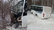 В Башкирии автобус с пассажирами съехал в кювет и врезался в дерево, есть пострадавшие