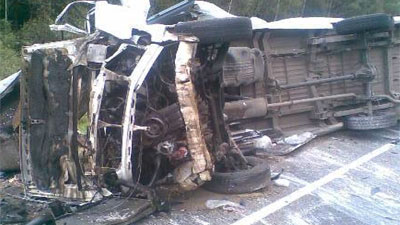 По словам очевидцев, авария случилась во время обгона. Не успев вовремя сманеврировать, водитель микроавтобуса врезался в грузовик "Рено".