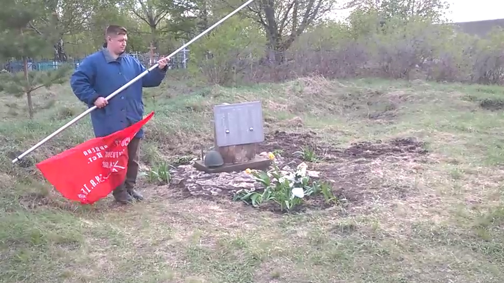 Также жители соорудили небольшой постамент, на который люди могут возложить венки или цветы.