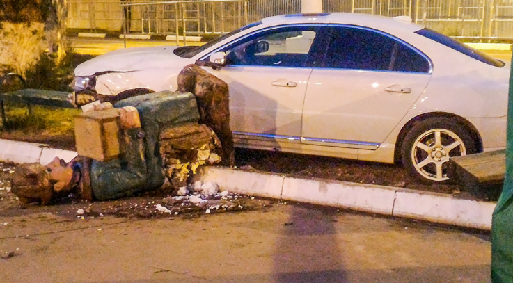 В результате случившегося никто, кроме скульптуры, не пострадал. По заявлениям очевидцев, водитель авто был пьян.