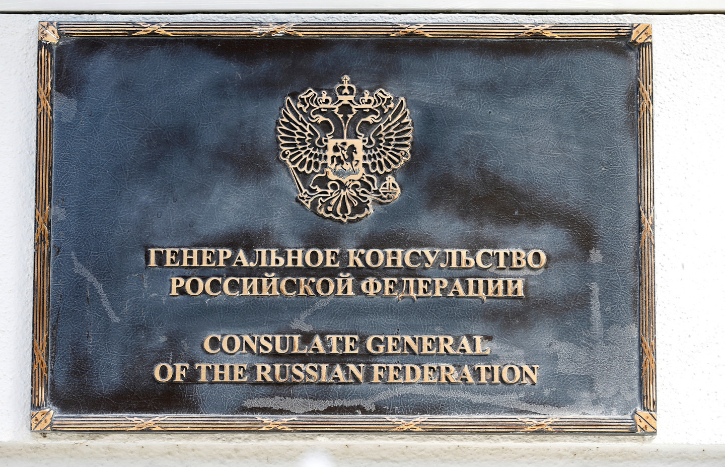 Вывеска у входа в генкосульство РФ в Сан-Франциско. Фото: © REUTERS/Stephen Lam