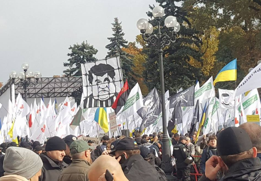 Среди демонстрантов — представители таких оппозиционных партий и общественных движений, как "Батьковщина", "Самопомощь", "Свобода", "Национальный корпус" и "Рух новых сил".