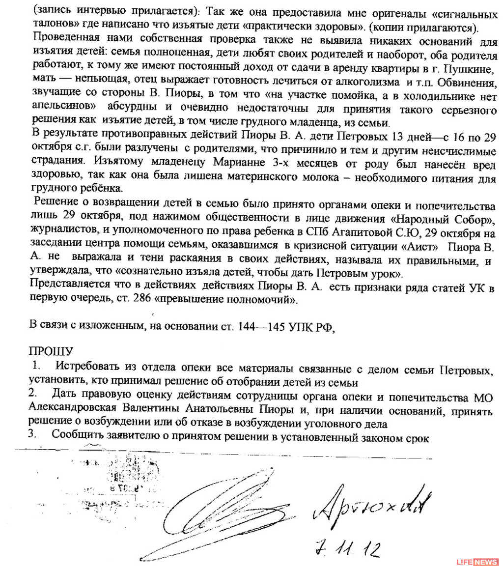 Но руководитель опеки Валентина Пиора намерена идти до конца и уже подала в суд иск о лишении Петровых родительских прав.