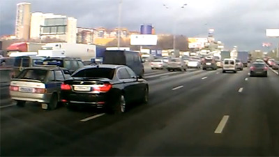 Блогеры засняли, как водитель заместителя министра на представительском авто и обычные полицейские на ВАЗ-2114 делили дорогу на МКАД.