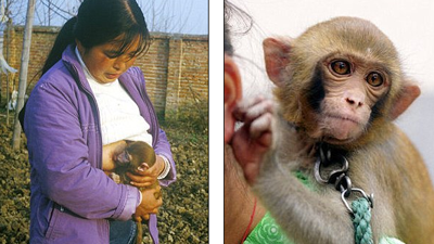 Джао Ксинджен стала интернет-звездой, когда по Сети розошлись необычные фотографии, на которых она кормит грудью маленькую обезьяну.