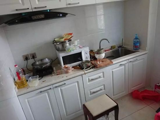 Повсюду были разбросаны обувь и одежда, от телевизора остался только каркас, мраморный столик был разбит, душевая кабина и кондиционер — уничтожены… Причём на обломках Сяо обнаружил разбрызганные следы сгнившего супа и кетчупа. Когда же домовладелец пошёл на кухню, он понял, что это ещё не всё. Сяо сразу понял, что не может нормально дышать, и его чуть не стошнило. Холодильник полностью был покрыт плесенью, повсюду были остатки протухшей еды.