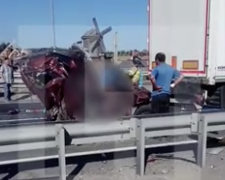 В Татарстане около деревни Исакова на трассе М7 столкнулись два грузовика и легковой автомобиль "Лада-Ларгус", в результате чего погибло четыре человека.