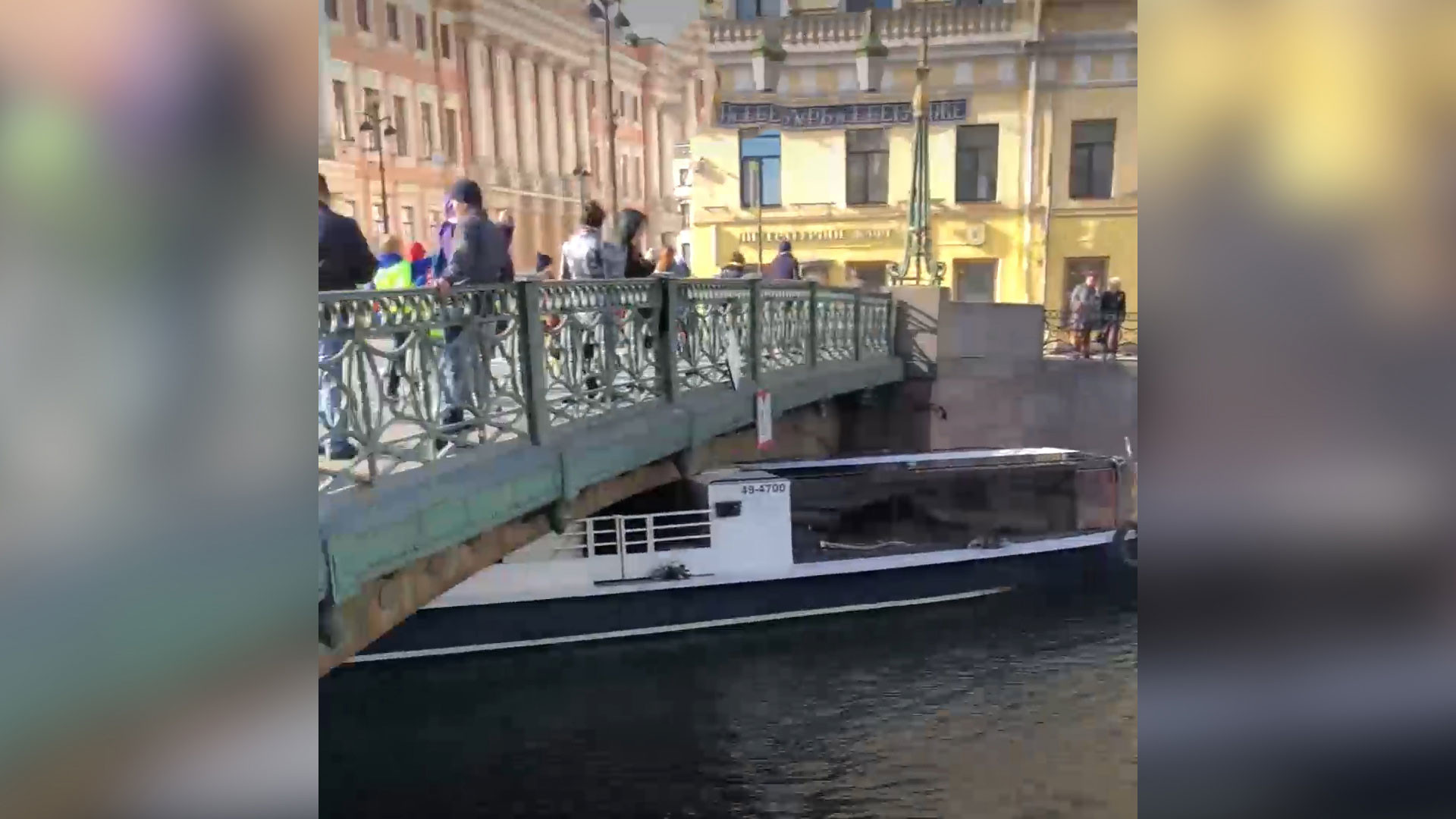 Пассажирский паром застрял под "мостом глупости" на реке Мойке в Петербурге