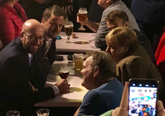 Канцлер Германии Ангела Меркель, президент Франции Эмманюэль Макрон и лидеры Бельгии и Люксембурга провели вечер 17 октября в баре на площади Гранд-плас. Политики заглянули туда после встречи с британским премьер-министром Терезой Мэй, посвящённой выходу Великобритании из Евросоюза.
