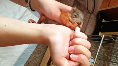 Женщина выкормила детской смесью спасенных бельчат