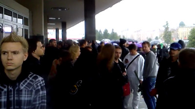 В полиции пока официально не подтверждают факт задержания, потому что сообщения о задержании нарушителя в 71-й отдел РУВД Петроградского района еще не поступало. Вероятно, фанат «Короля и шута» пока находится в одном из автомобилей сотрудников полиции.