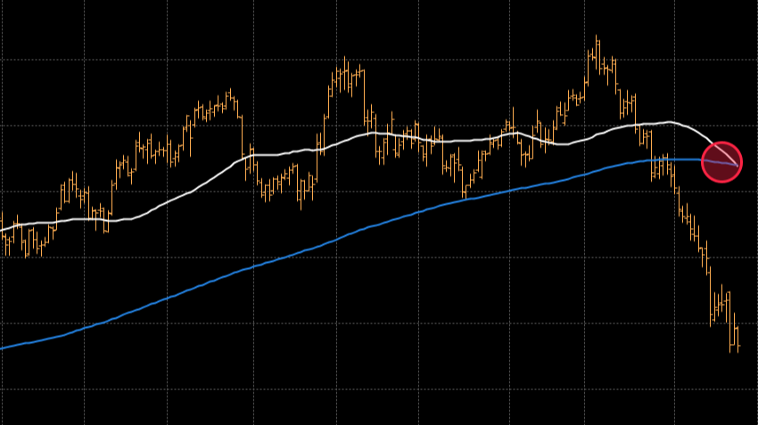 Отмечается, что 50-дневный скользящий средний показатель цены фьючерсов на нефть WTI упал ниже соответствующего показателя за 200 дней, в результате на графике образовалось пересечение, которое известно как "крест смерти".
