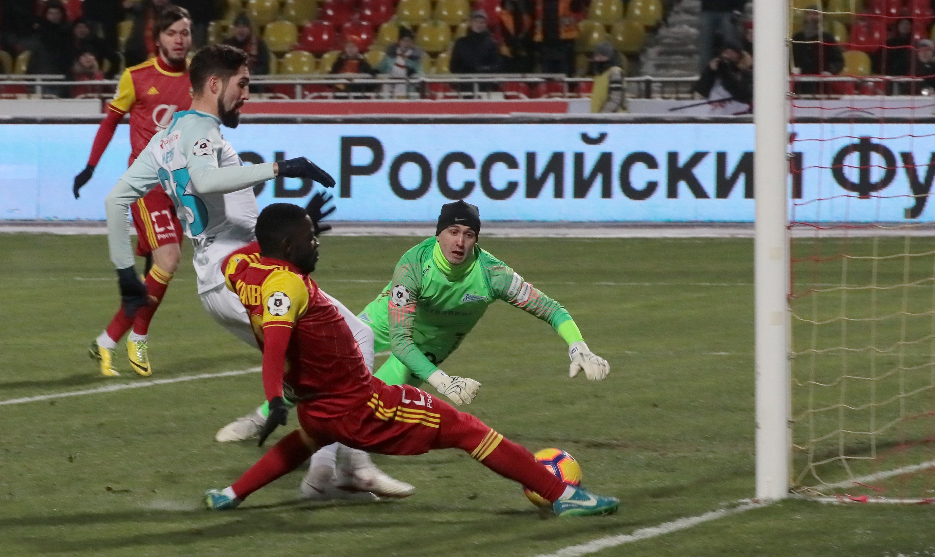 Такой ответ мог бы деморализовать середняка-аутсайдера РПЛ, но только не в этот вечер. "Зенит" заметно устал, вероятно, даже морально, а в мороз играть оказался не готов. Ошибку Лунёва решил поддержать Мевля, и на пустом месте словенец скинул грудью мяч Кангве, и тот всё же реализовал выход один на один со второй попытки.