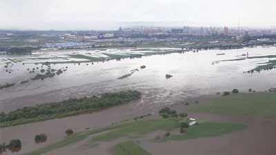 Вода перехлестнула через дамбу на Амуре