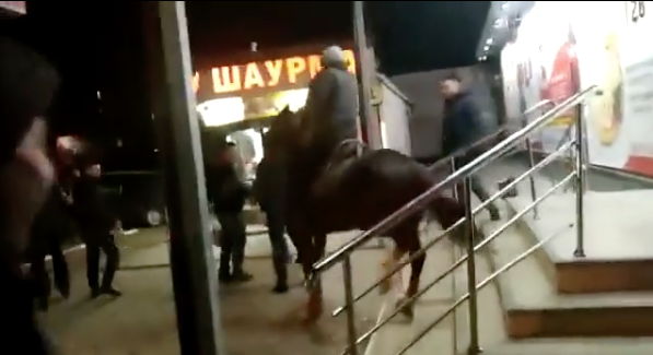 В киргизском городе Токмок мужчина, будучи в состоянии алкогольного опьянения, заехал в супермаркет верхом на лошади.