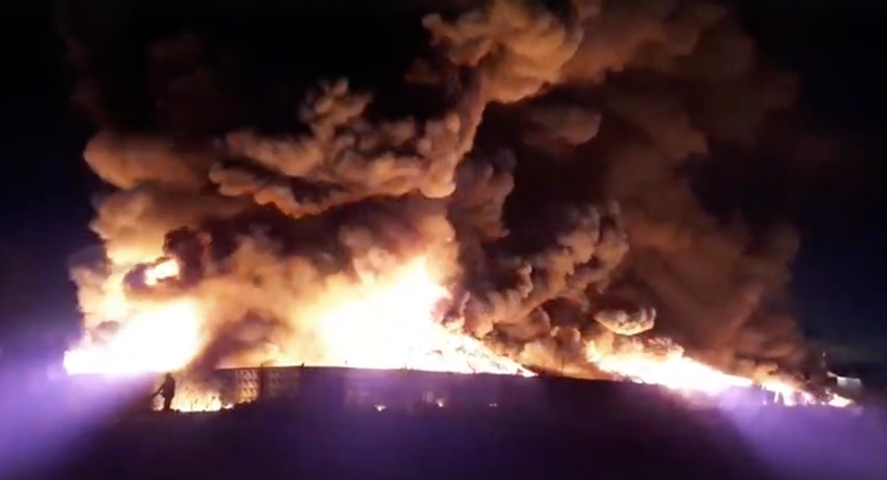 К тушению пожара были привлечены 55 человек и 14 единиц техники, о причинах возгорания не сообщается, информации о погибших не поступало.