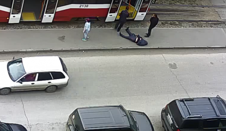 Кадр из видео © Водитель трамвая выкинул на улицу мужчину, которому стало плохо / YouTube