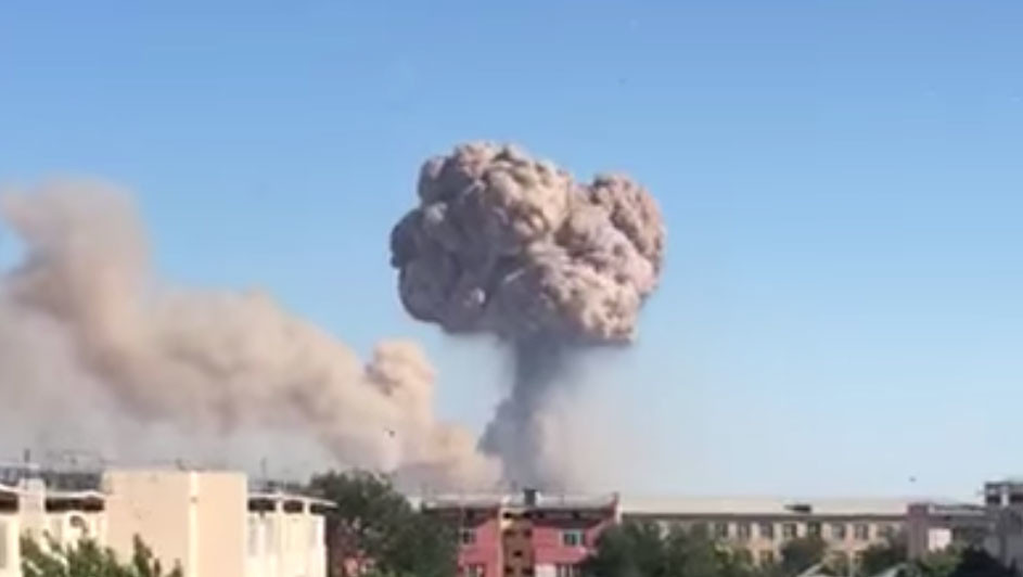Напомним, взрыв в складском помещении воинской части в казахстанском городе Арысь прогремел утром 24 июня. На данный момент известно о двух погибших, ещё 165 обратились за медпомощью, из них 89 человек были госпитализированы. Спасатели эвакуировали всех жителей из зоны ЧС. В данный момент на месте происшествия работают пожарные расчёты, они локализовали возгорания в жилых домах, однако на складах тушение было прервано в связи с продолжающимися взрывами.