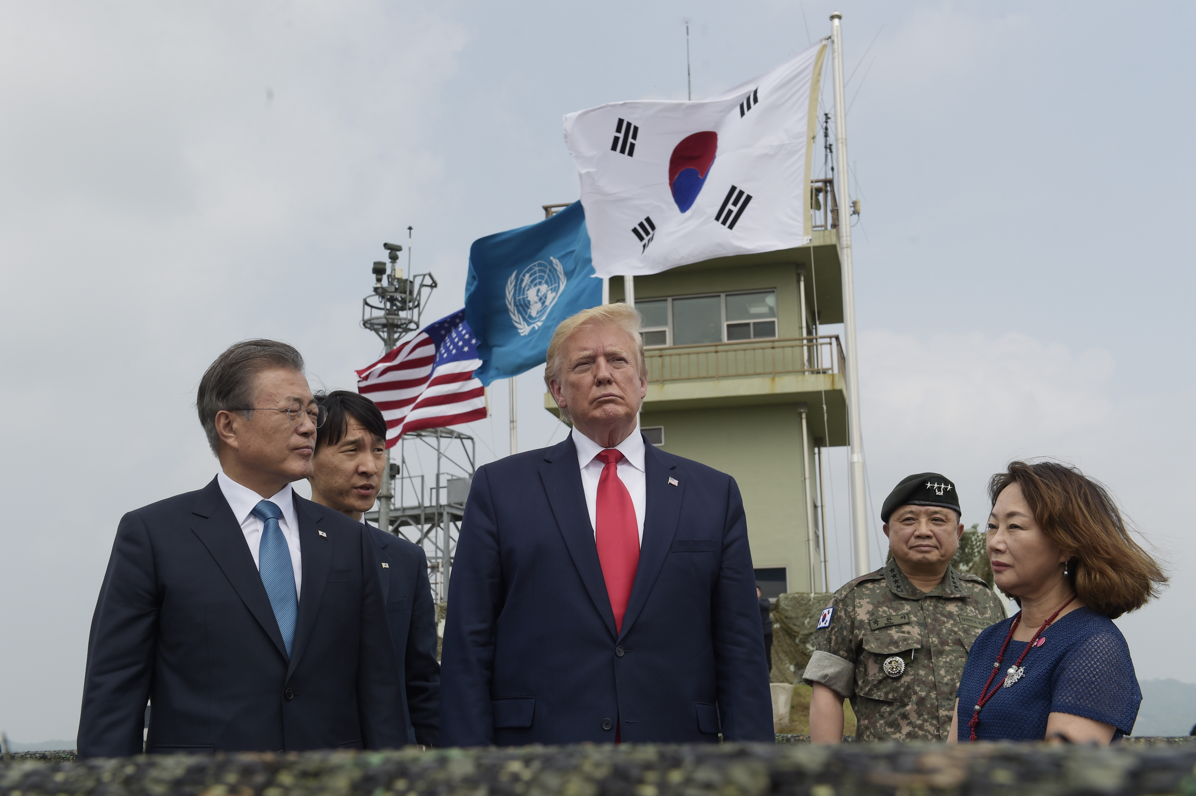 После осмотра территории КНДР Трамп и Мун Чжэ Ин посетили американских и южнокорейских солдат на военной базе в районе демилитаризованной зоны.