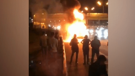 На кадрах видно, как автомобиль полностью охвачен пламенем, которое постепенно усиливается. Вскоре после происшествия на место ЧП подъехали пожарные, которые сумели потушить пламя.