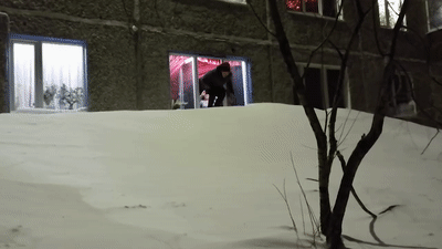 В Сеть попало видео того, как жители российского города Воркута, что в Республике Коми, съезжают по снежной горке прямо из окна своего дома на первом этаже.