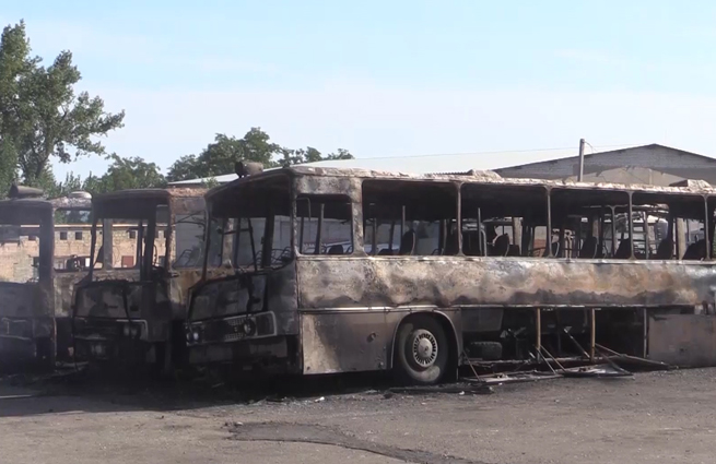 Автостанция в Донецке стала целью украинских артиллеристов рано утром 24 августа. В результате уничтожены пассажирские автобусы. Первым же попаданием снаряд подорвал емкость с газом. Произошел взрыв, легко пострадал один из работников транспортного предприятия.