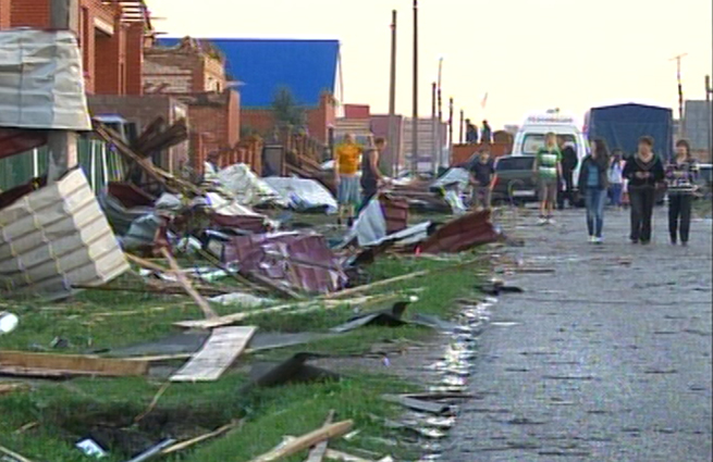 Сильнейший шквал ветра прошелся по трем деревням и затронул часть города Янаула. По предварительной информации, два человека погибли, более 20 пострадали, в том числе и двое детей. Многие были ранены обломками крыш и вырванными стволами деревьев, некоторых ветер буквально отрывал и разбивал об землю.