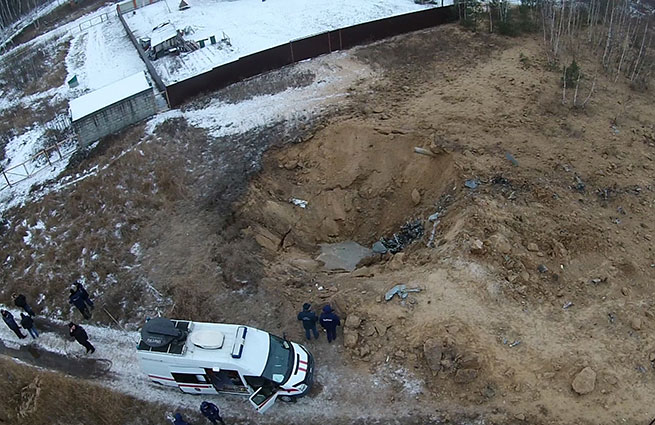 Учебно-боевой МиГ-29 потерпел крушение 4 декабря в деревне Чемодурово Воскресенского района Подмосковья. Истребитель оставил в земле воронку диаметром 12 и глубиной около 4 метров. Ранее LifeNews опубликовал первое видео места ЧП.