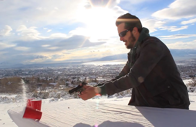 Американский певец Джим Хьюиш сделал необычный кавер на известный хит Анны Кендрик «Cup Song» («Стаканчики» или «Песня на стаканах». — Прим LifeNews). В качестве аккомпанемента музыкант использовал звуки передергивания пистолетного затвора и выстрелов.