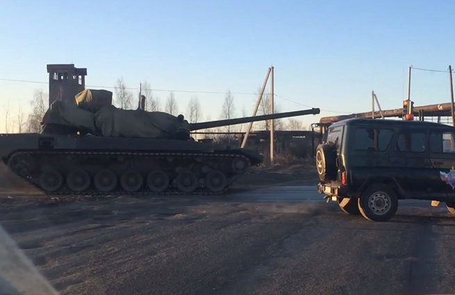 В Интернете появилось первое видео, на кадрах которого запечатлен новейший российский танк «Армата». Тяжелую военную машину планировалось представить общественности во время парада ко Дню Победы на Красной площади 9 Мая. Однако интернет-пользователям удалось сначала сфотографировать укрытые брезентом танки при транспортировке их в Алабино, где проходит репетиция парада. Позже появилось и видео.