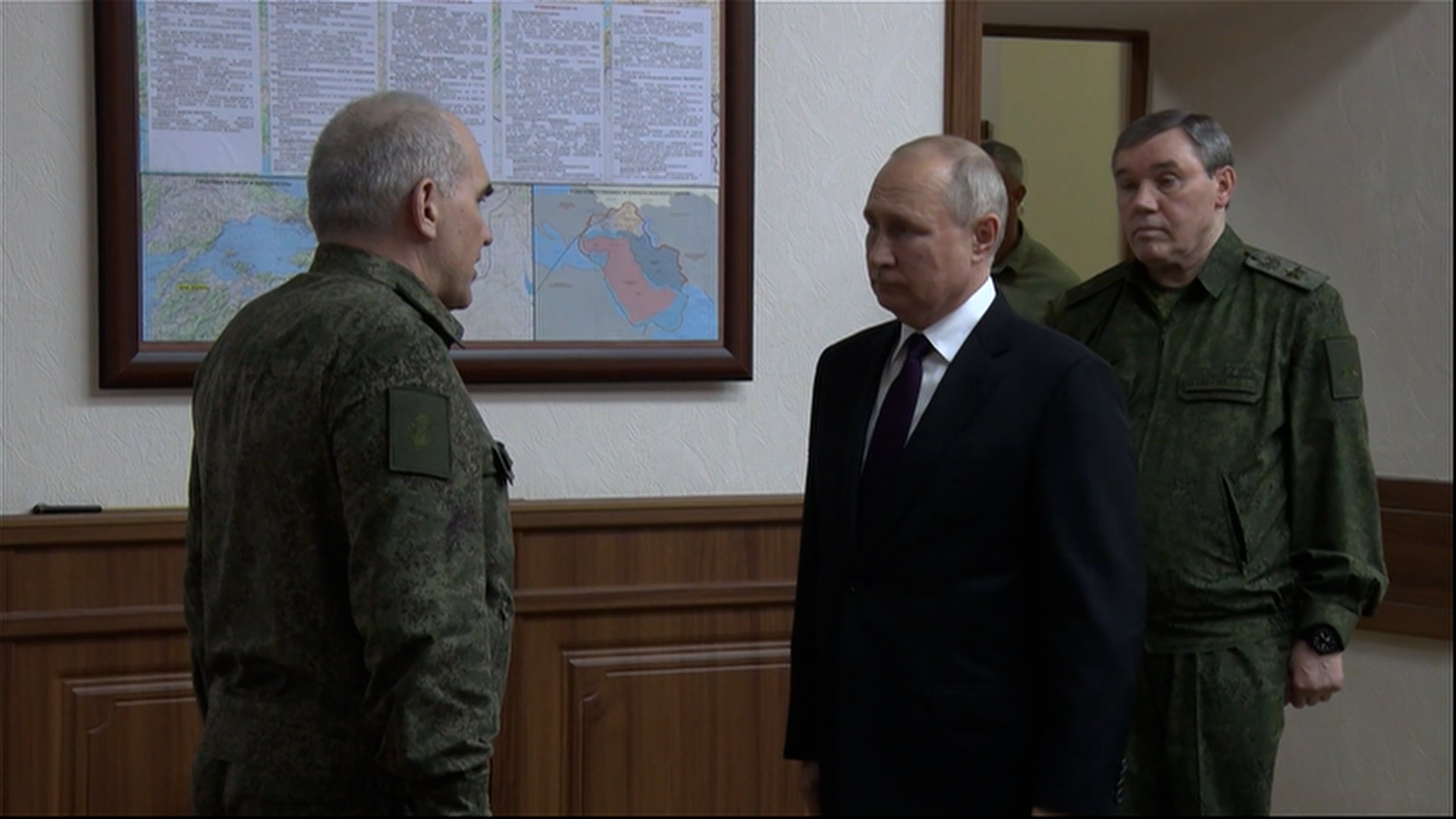 Пресс-служба Кремля опубликовала видео посещения президентом России Владимиром Путиным штаба группировки войск, участвующих в специальной военной операции, в Ростове-на-Дону.