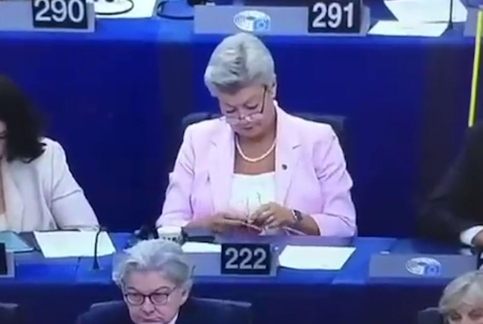 Во время скучной речи фон дер Ляйен в Европарламенте еврокомиссара заметили за вязанием. Видео © Twitter / f_philippot