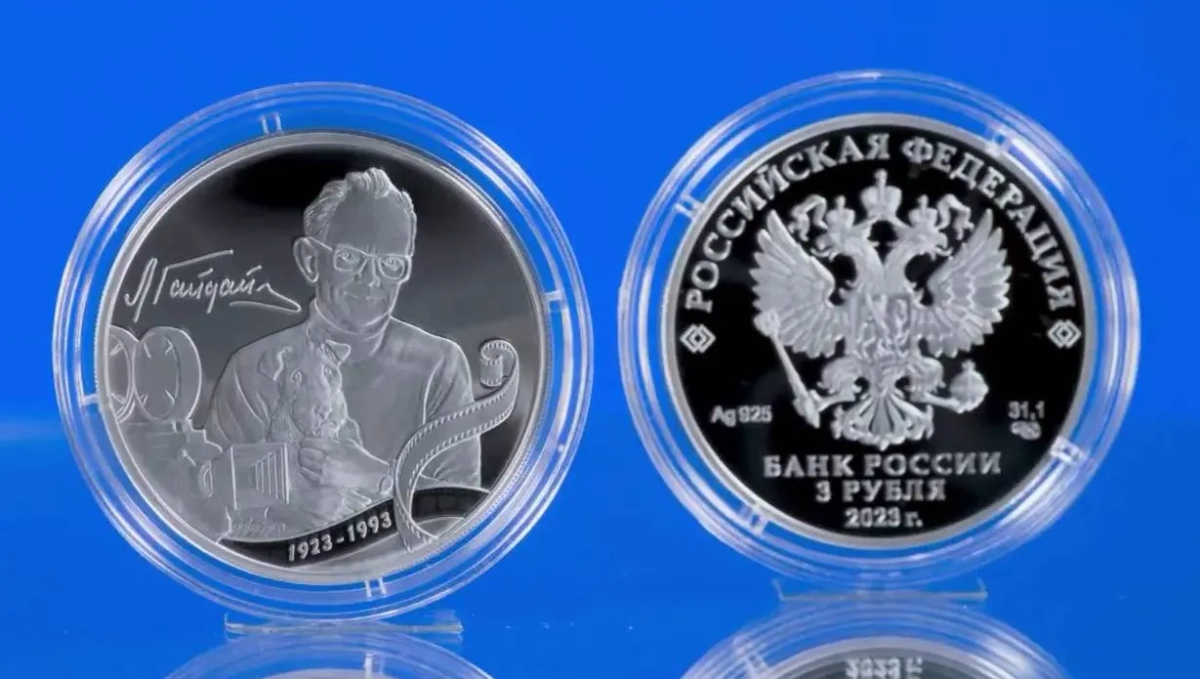 Памятная монета, посвящённая Леониду Гайдаю. Видео © Telegram / Банк России