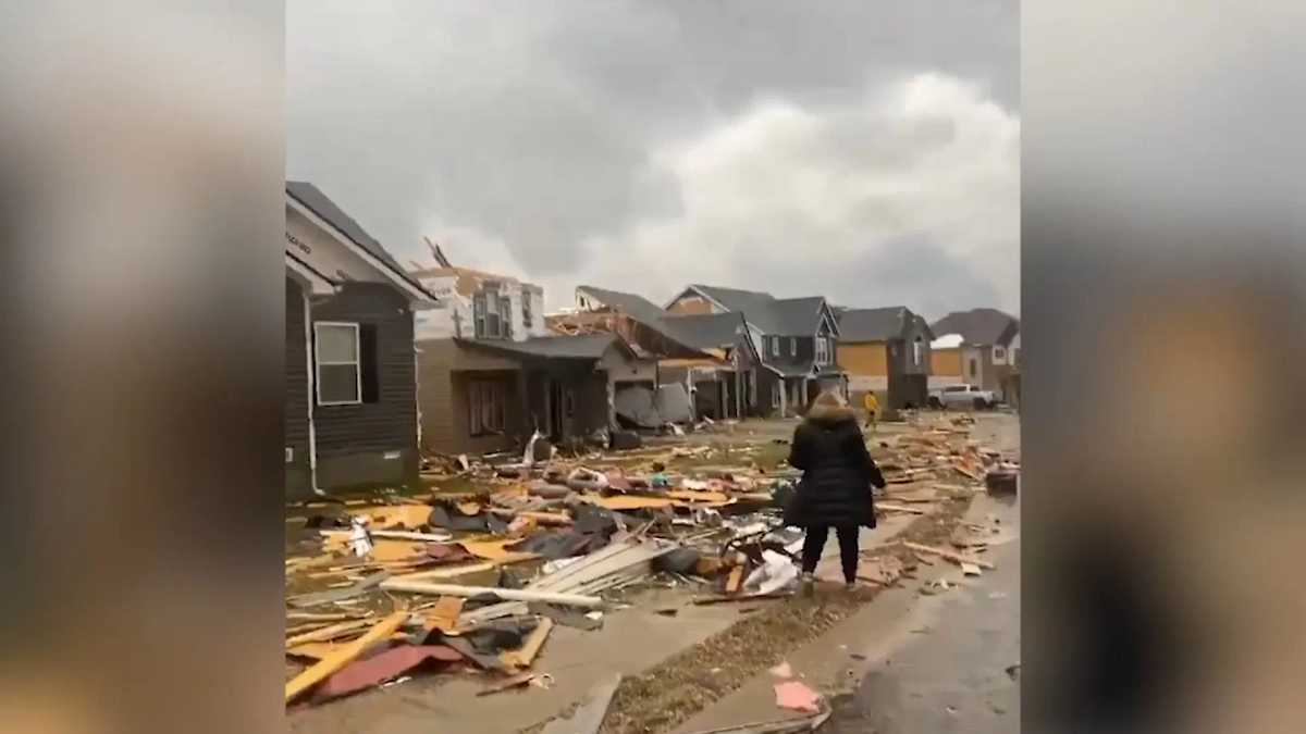 На появившихся в социальных сетях кадрах можно увидеть десятки уничтоженных строений, множество разбросанных по проезжей части помятых машин и поваленных шквальными порывами ветра деревьев. Местные жители были вынуждены прятаться по подвалам. Убежище было открыто в северо-восточной средней школе города.