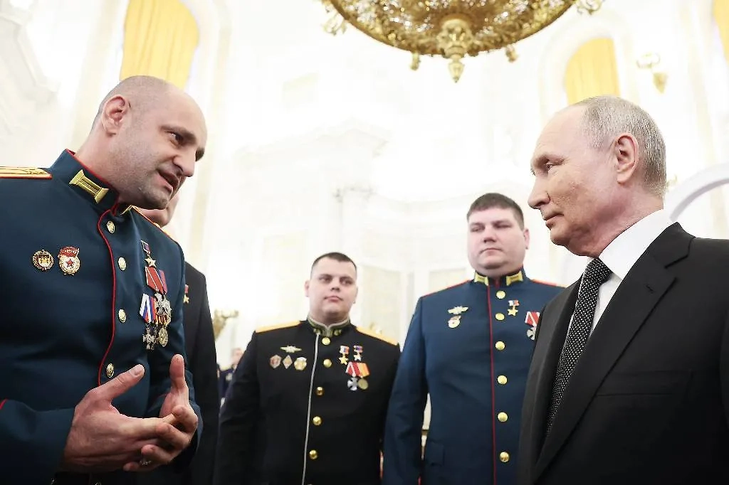 Путин дал наставление Герою ДНР Жоге "беречь ребят" на фронте. Видео © Telegram / ЗАРУБИН