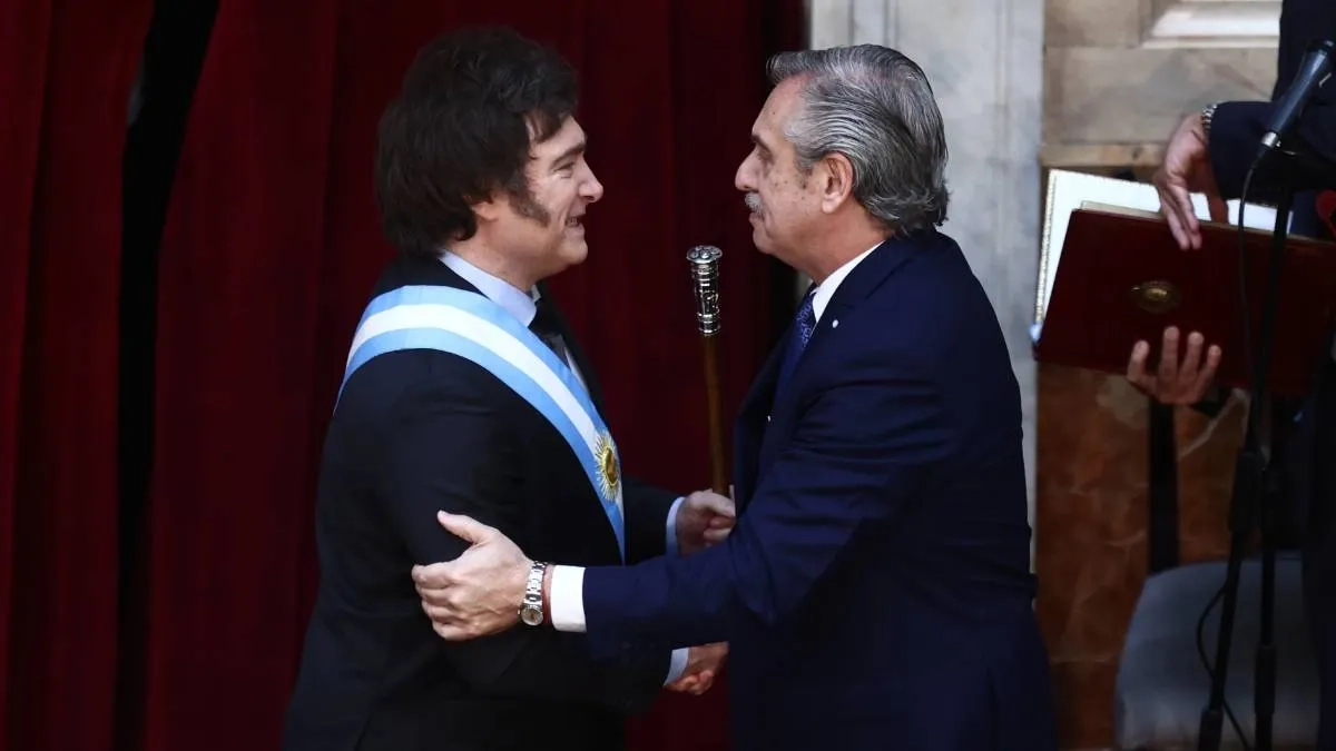 Новый президент Аргентины Хавьер Милей и бывший лидер страны Альберто Фернандес. Обложка © Getty Images / Tomas Cuesta