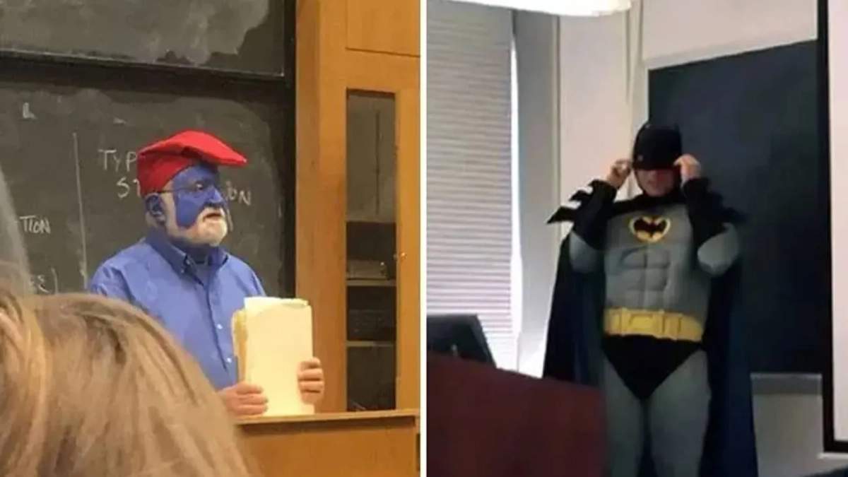 "Мой учитель сказал, что если весь класс сдаст первый тест с правильными ответами выше чем 80%, то он на день нарядится в Бэтмена. Фотография с того дня, когда мы получили результаты проверочной", — shutupdangit.