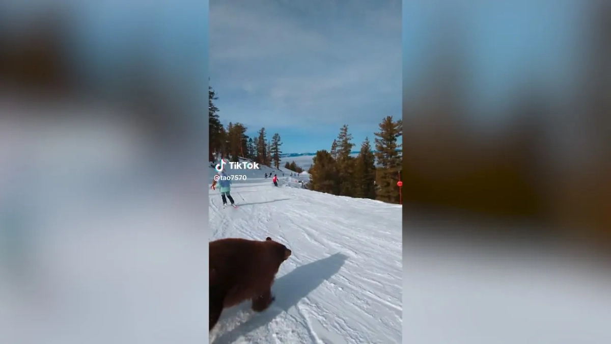 Медведь, выбежавший на лыжную трассу в Калифорнии. Видео © TikTok / tao7570