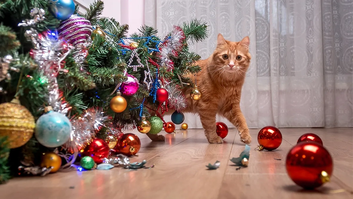 Как уберечь новогоднюю ёлку от домашних животных. Фото © Shutterstock