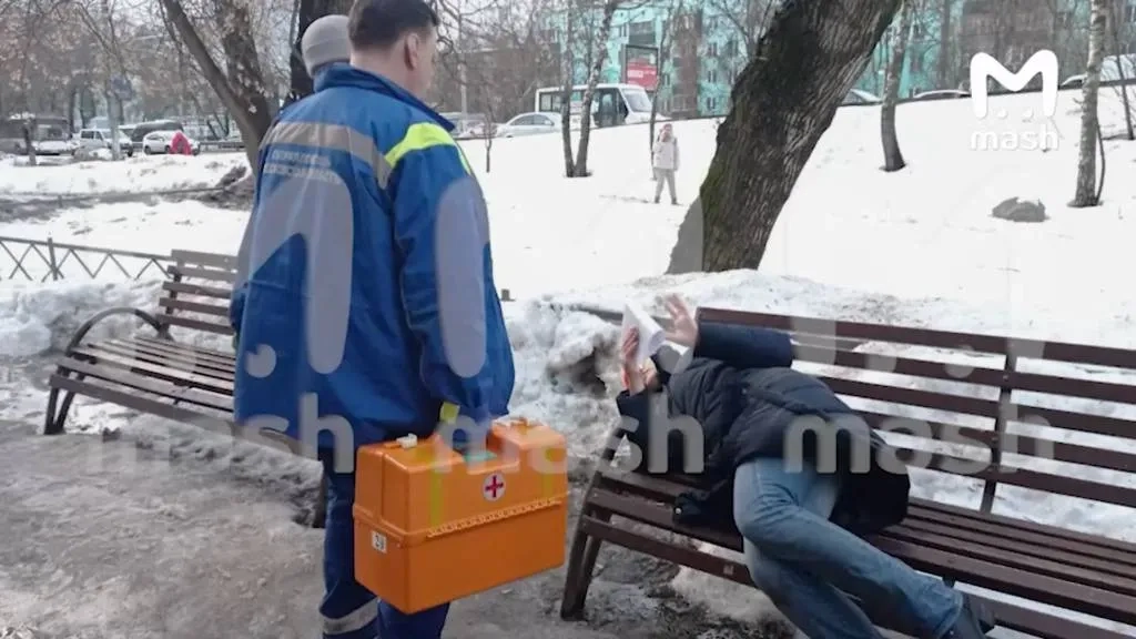 Глыба льда упала на людей, собравшихся у входа в военкомат в подмосковных Люберцах. На видео Mash — работа врачей и обстановка у здания.