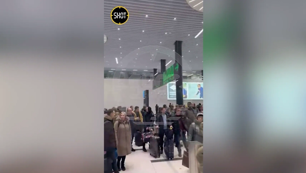 Сотни пассажиров оказались заблокированы в зале прилётов аэропорта Толмачёво в Новосибирске. Видео © SHOT