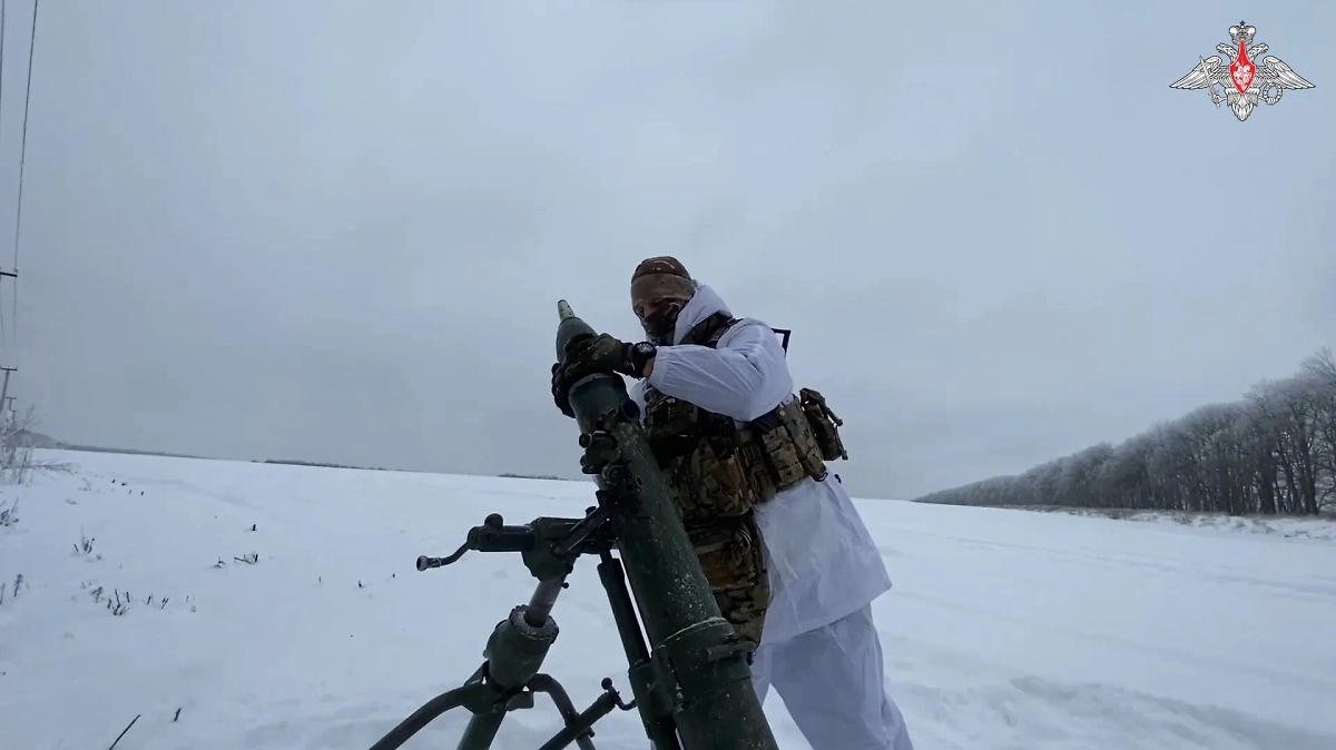 Минобороны показало кадры боевой работы "кочующего" 120-мм миномёта под Купянском
