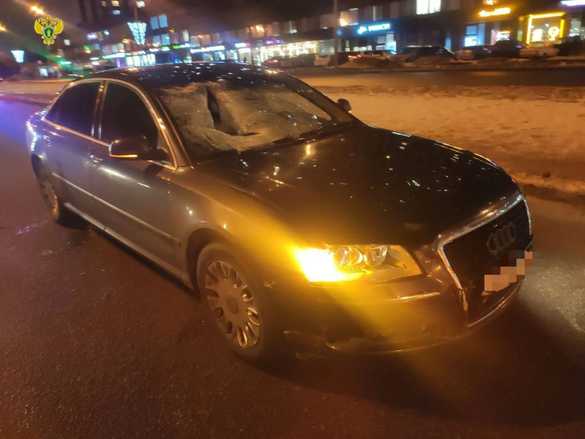 Автомобиль Audi, водитель которого совершил наезд на пешехода в Москве. Обложка © t.me / ПРОКУРАТУРА МОСКВЫ