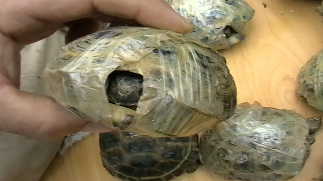 Контрабандисты замотали черепах скотчем, чтобы те не смогли убежать и не шевелились по дороге, и побросали их в холщовые мешки. Подобным варварским способом животных пытались переправить через границу, чтобы потом продать в Новосибирске. Но планы преступников в итоге были разрушены.