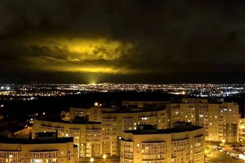 Звуки взрывов над Белгородом. Видео © t.me / SHOT