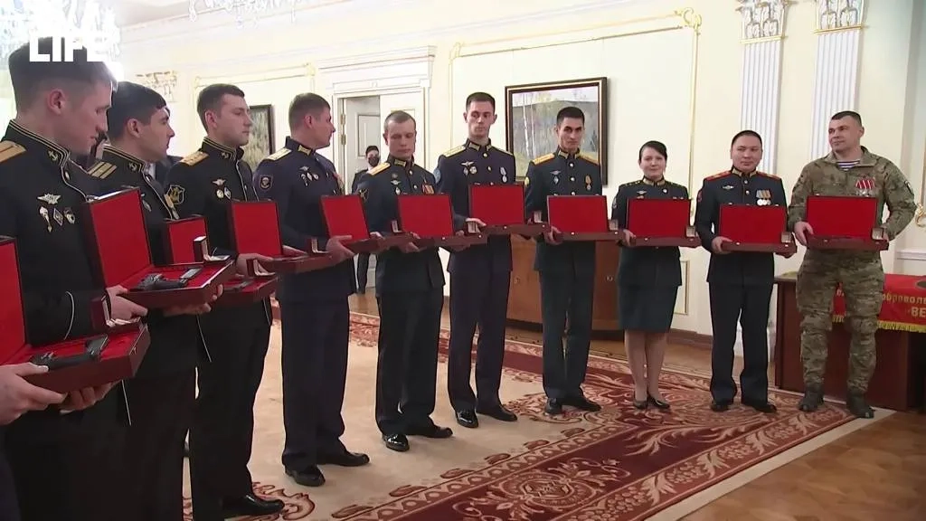 Путин наградил участников СВО личным табельным оружием и значками со штандартом. Видео © LIFE