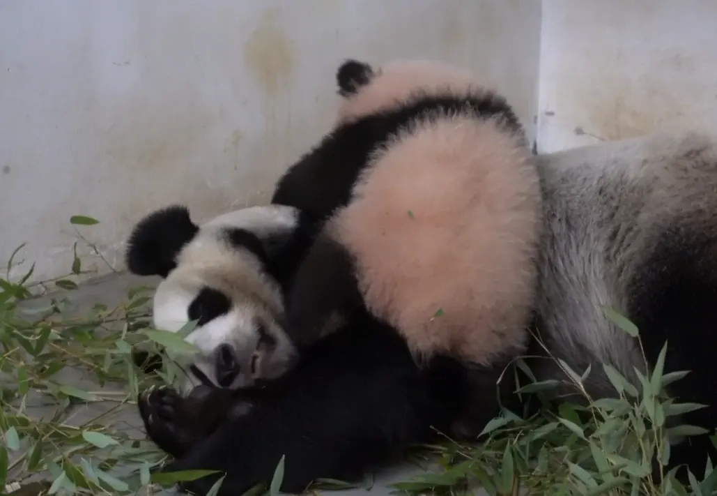 В Московском зоопарке показали, как малышка-панда будит свою маму