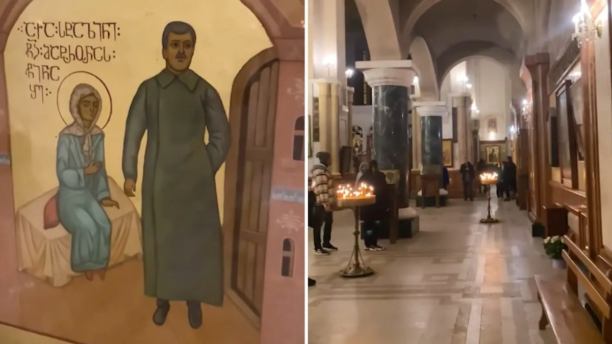 В главном храме Тбилиси Цминда Самеба появилась икона с изображением советского лидера Иосифа Сталина, сообщил грузинский историк и политик Гиорги Канделаки. На опубликованном им видео — образ бывшего лидера СССР в шинели.
