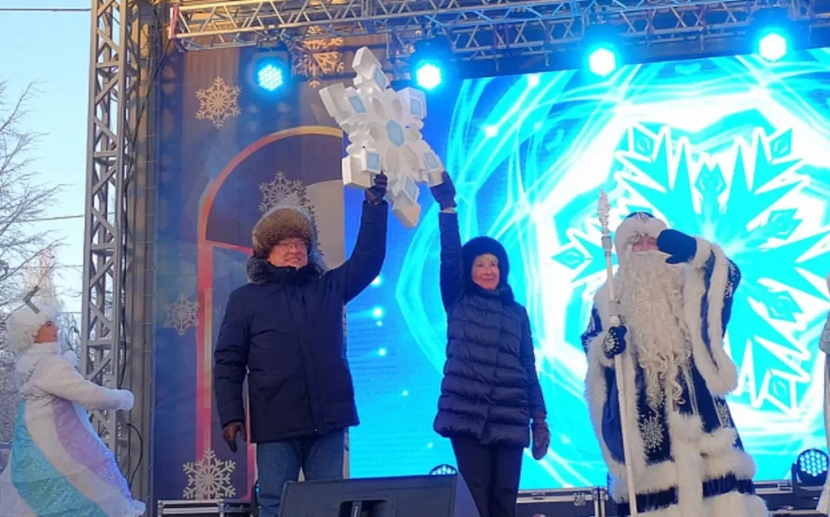 Суздаль передал Кирову символ новогодней столицы России — снежинку. В церемонии приняли участие мэр города Владимирской области Алиса Бирюкова и её коллега из новой столицы Вячеслав Симаков.